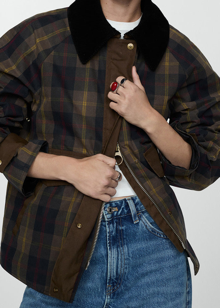 The Rustic Plaid Field Jacket offers a perfect blend of countryside charm and urban style. Featuring a classic plaid pattern and contrasting corduroy collar, this jacket is both functional and stylish. Crafted from durable fabric, it includes large utility pockets and snap-button closures for a practical touch. Ideal for layering during cooler weather, this versatile piece pairs effortlessly with jeans or tailored trousers.
