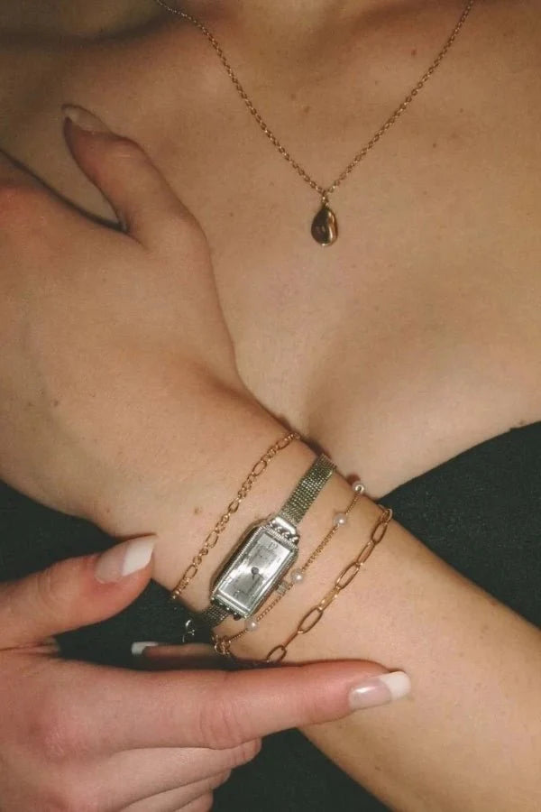 The Rylai Watch combines classic style with modern lightness. Its oval dial, gently curved lugs, and slim link bracelet are reminiscent of the aesthetics of past decades – reinterpreted for today’s everyday life. The shimmering dial with minimalist markers adds a refined touch to any look.