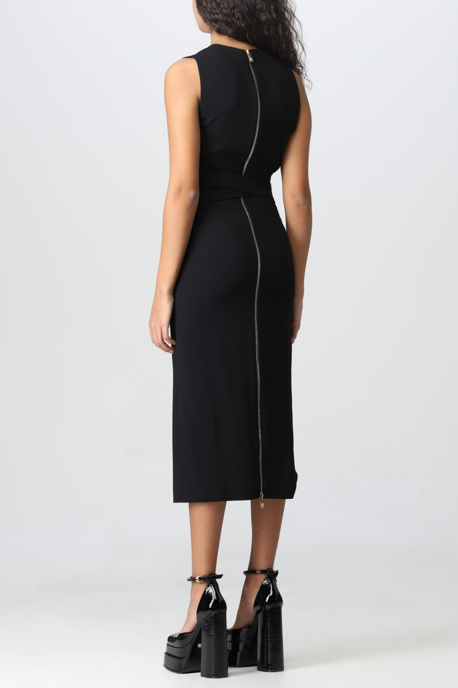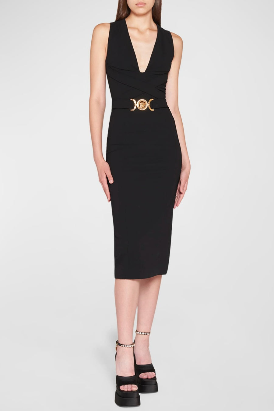 Saple V-neck Belted Embellished Midi Bandage Dress