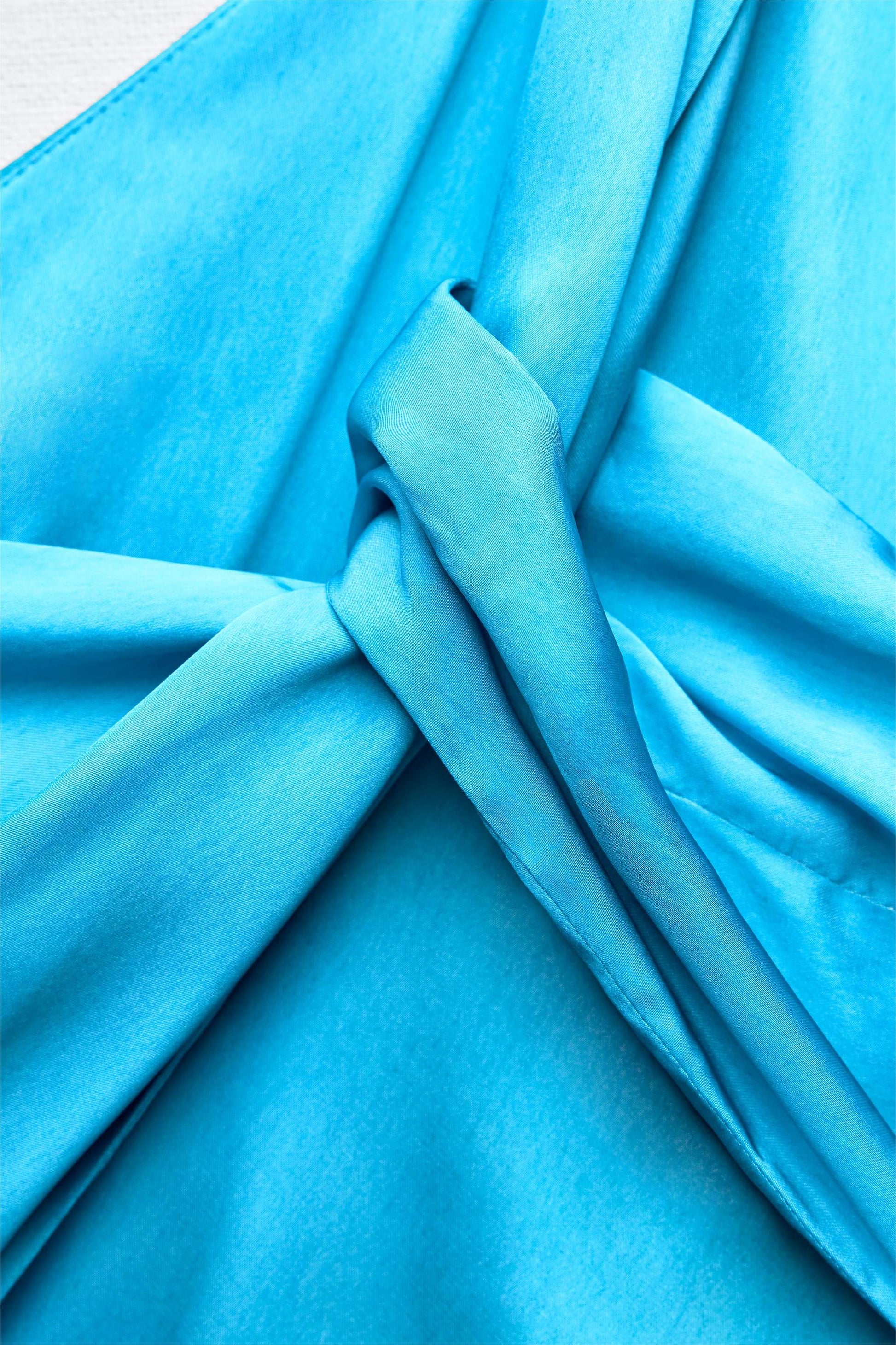 - Satin, tie dye, one-shoulder, midi dress, blue