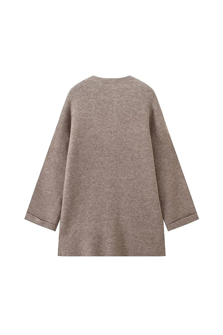 - Design: Mid-length coat with single-row buttons and matching scarf