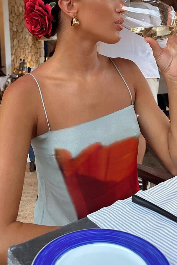 Seasonal Blooms Abstract Tulip Print Slip H-line Vacation Maxi Dress