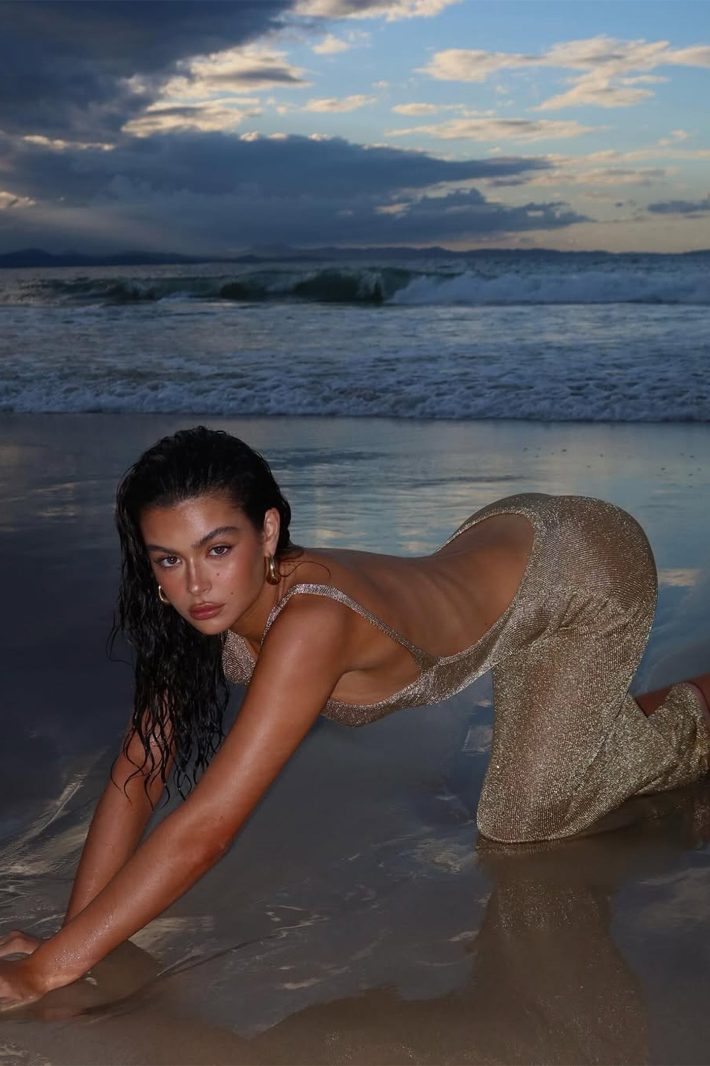 Selene Metallic Backless Knit Maxi Dress