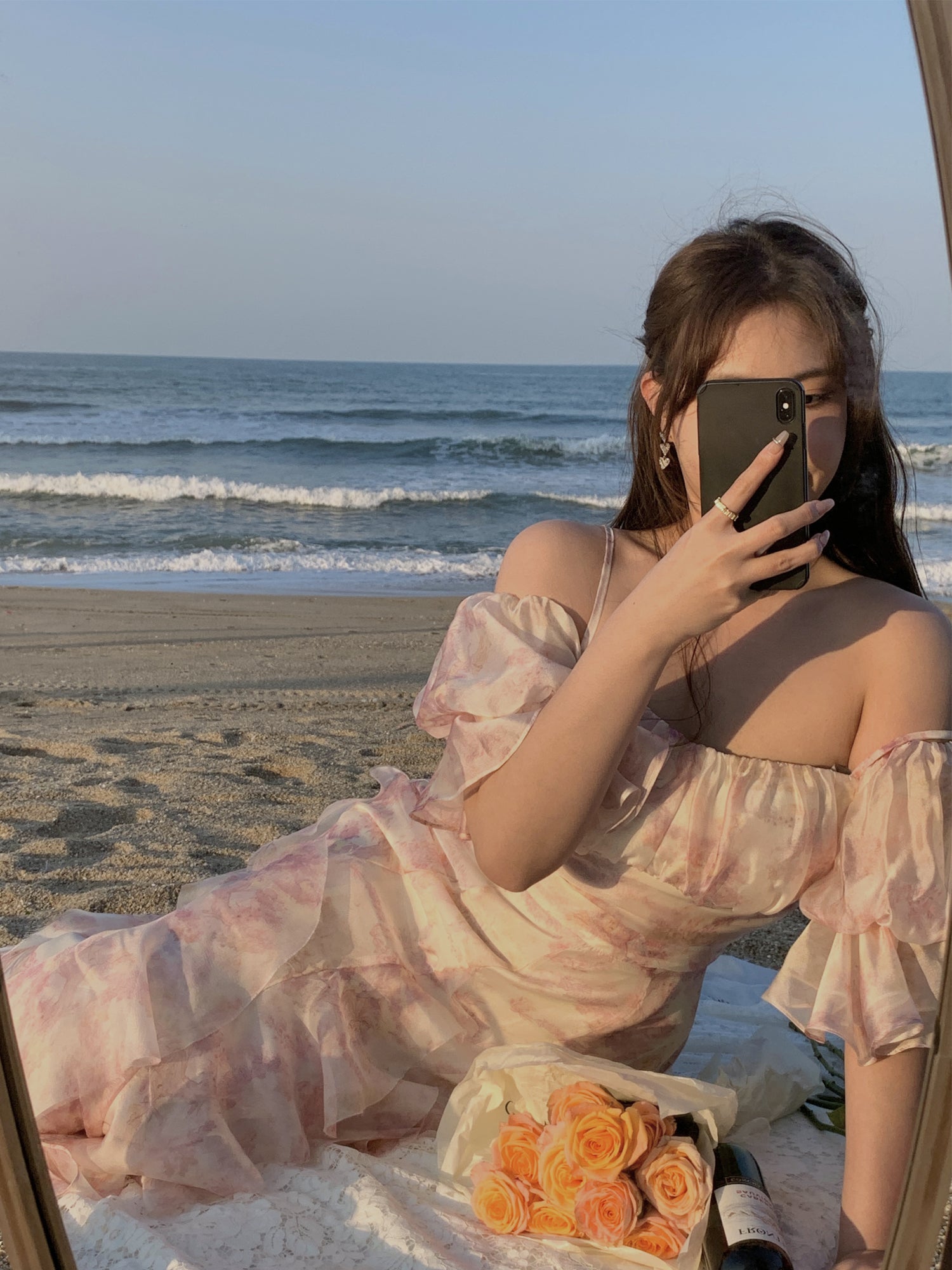 - Semporna Melody Silk Floral Maxi Dress - French Off-Shoulder Fairycore Gown