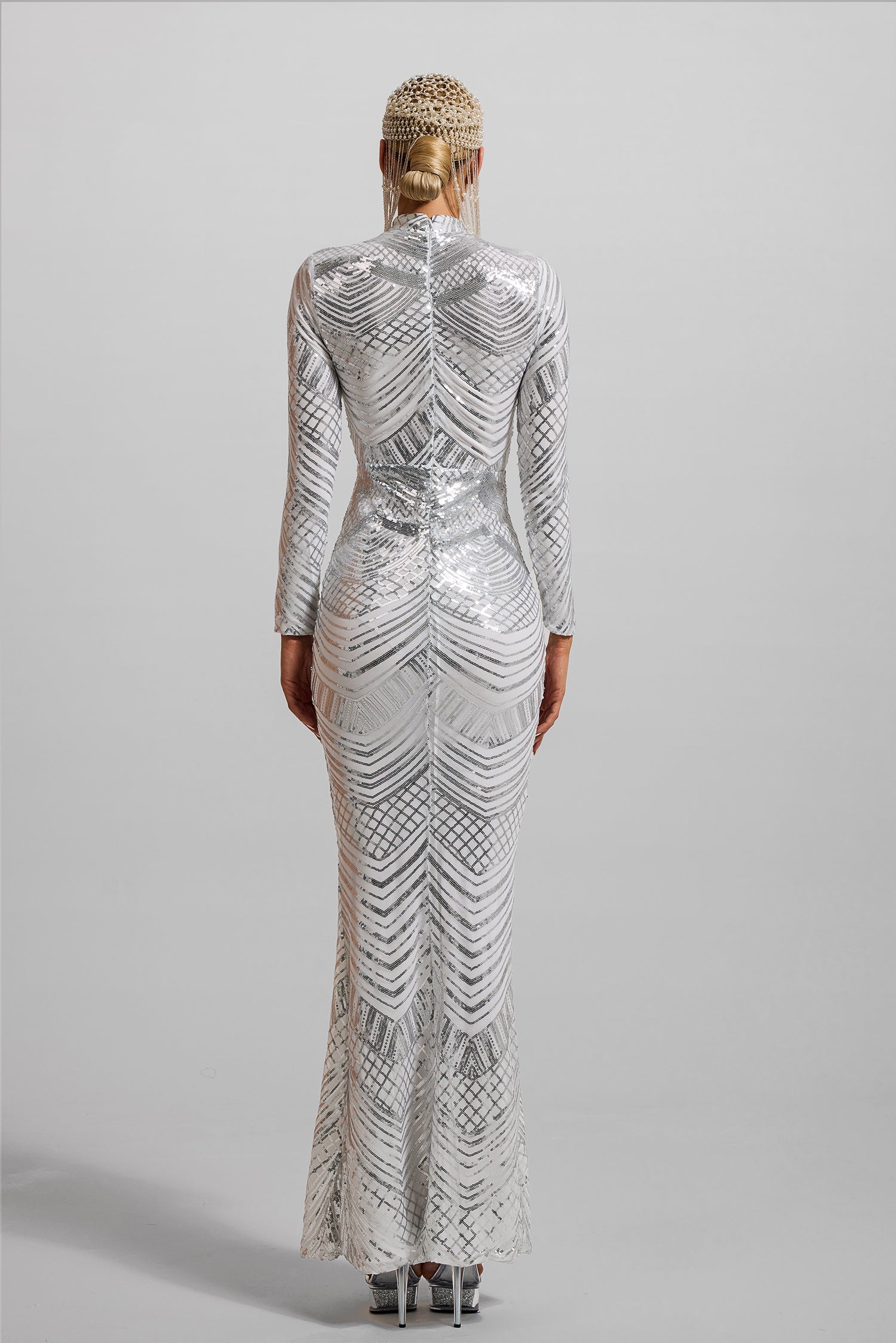 - Sequin, high neck, long sleeve, maxi dress