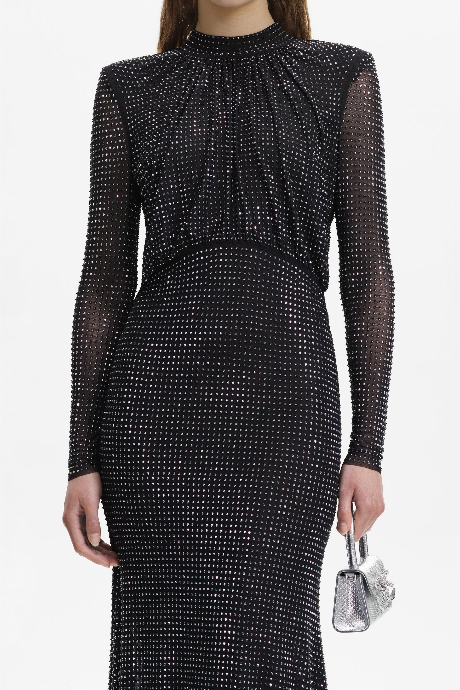 Rhinestone Stand Collar Solid Mermaid Maxi Dress