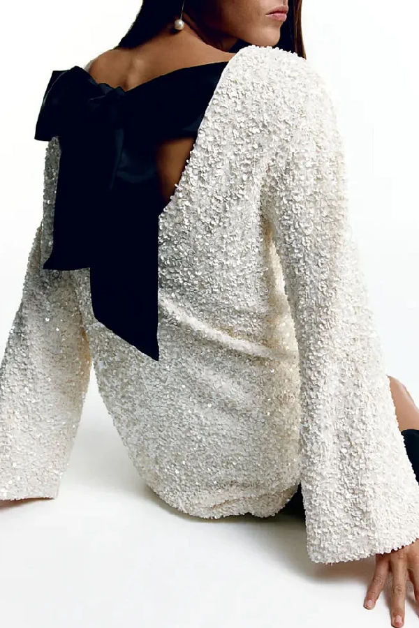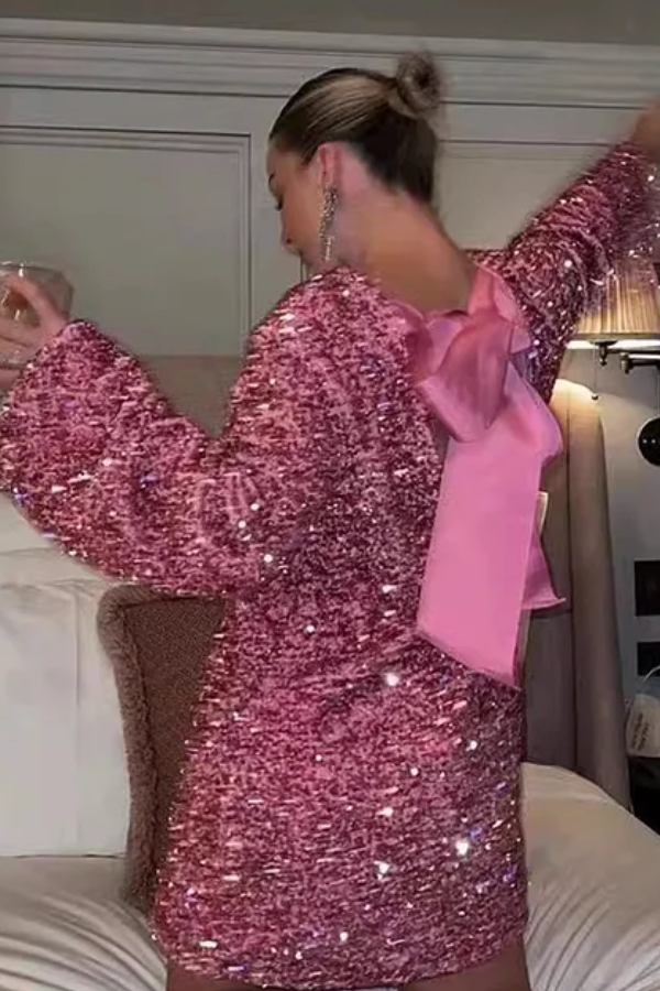 Get ready to steal the spotlight with our Sequined Tie-Back Dress._