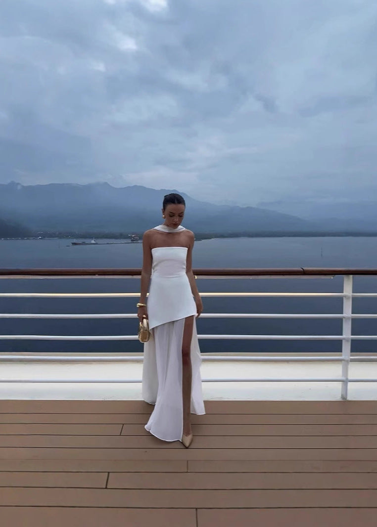 Whether you're headed to a sunset yacht party or an upscale destination dinner, this dress offers elevated sophistication with ease and grace.