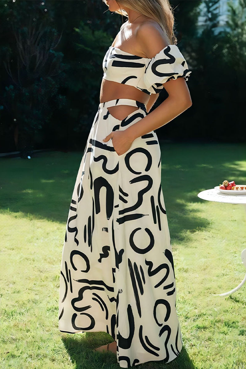 Sexy College Geometric Hollowed Out Off the Shoulder Short Sleeve Two Pieces