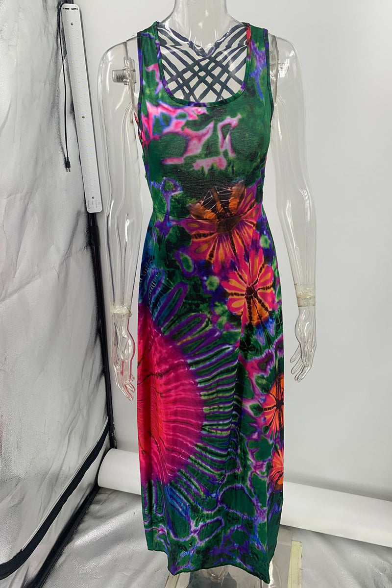 Sexy College Print Backless U Neck Sleeveless Dress Dresses(4 Colors)