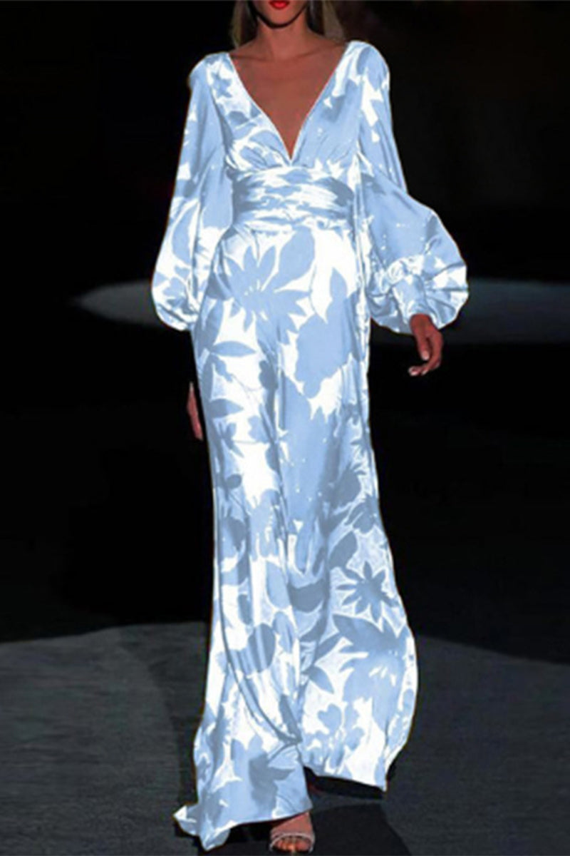 Sexy Elegant Print Frenulum V Neck Evening Dress Dresses(4 Colors)