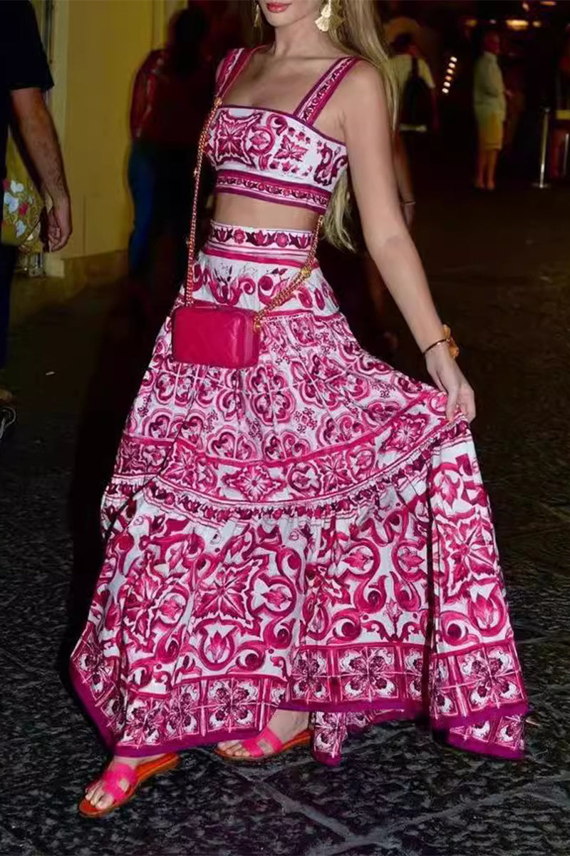 Sexy Geometric Print Square Neck Sleeveless Two Pieces
