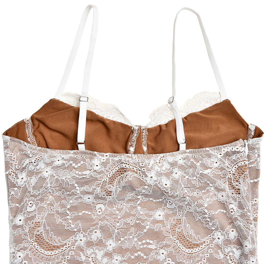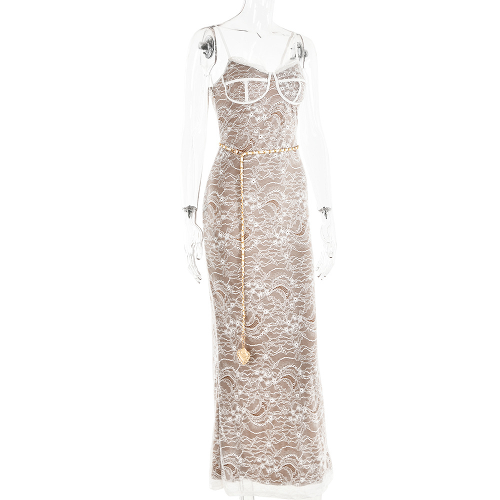 Lace Stitched Backless Sleeveless Split Maxi Dress