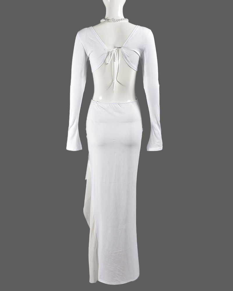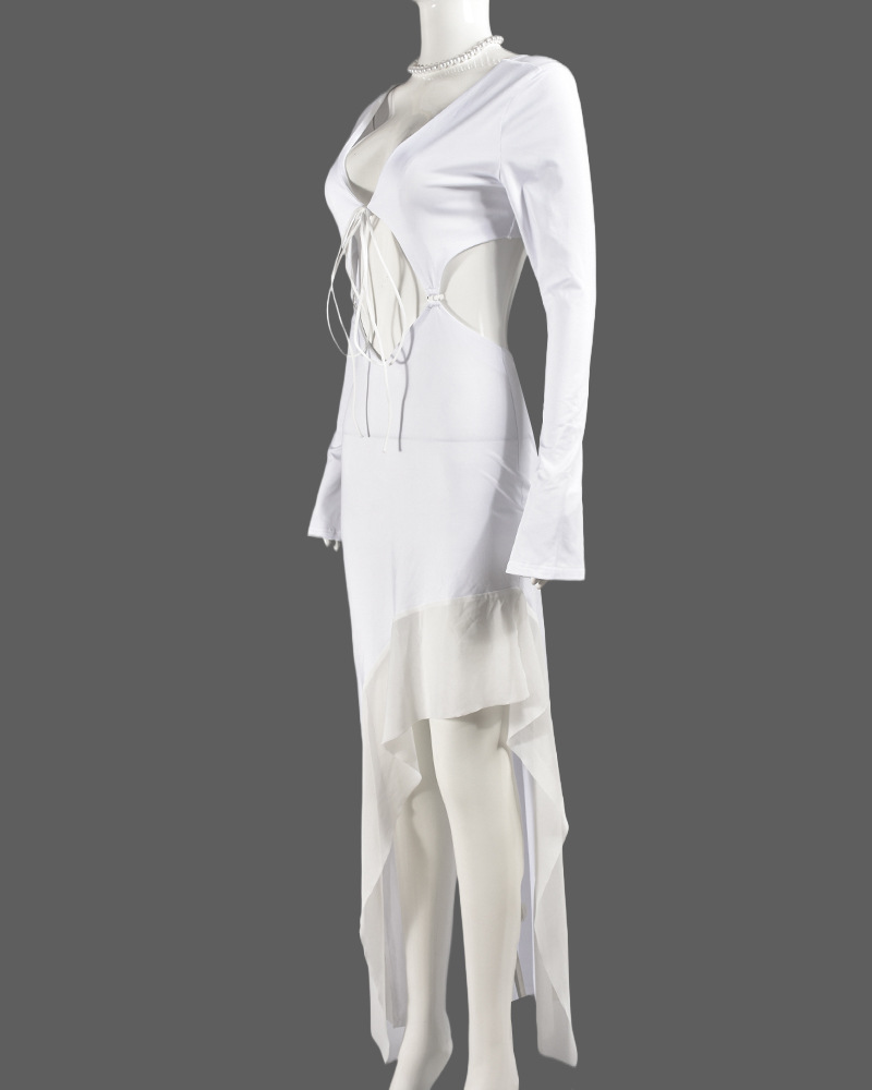 Sexy Long Sleeve V-Neck Lace Up Maxi Dress
