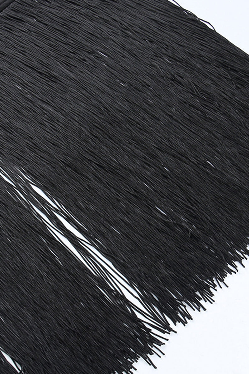 Sexy Party Solid Tassel Slit Strapless Wrapped Skirt Dresses
