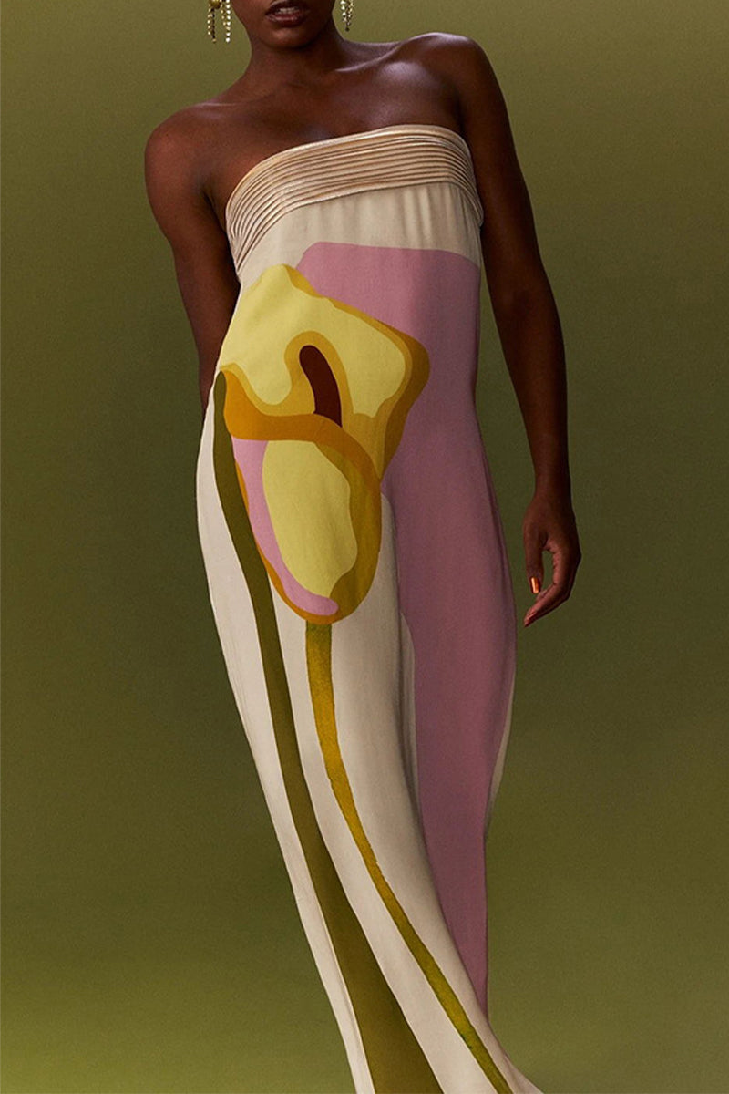 Sexy Print Flowers Strapless One Step Skirt Dresses