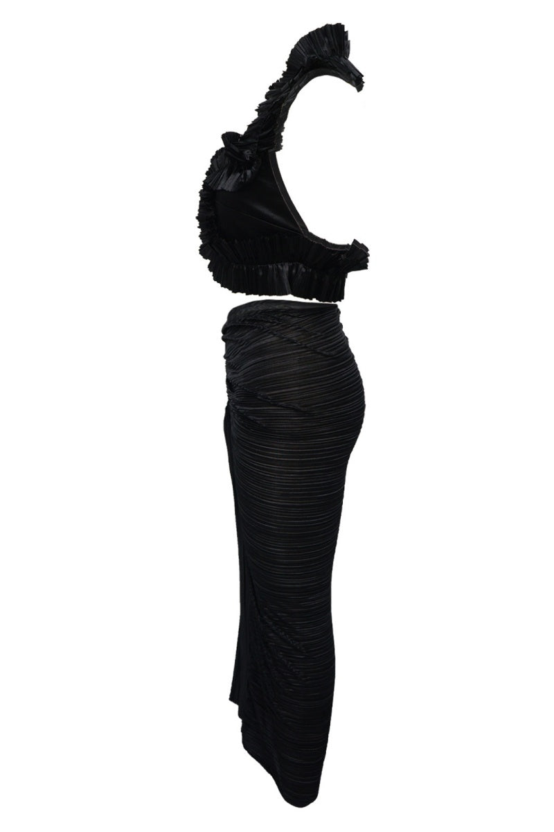 Sexy Solid Color Backless Slit Halter Sleeveless Two Pieces