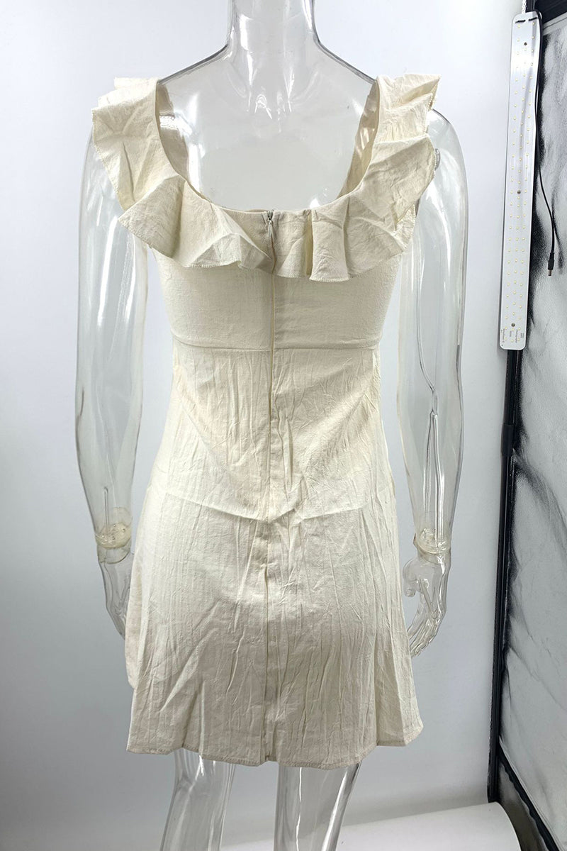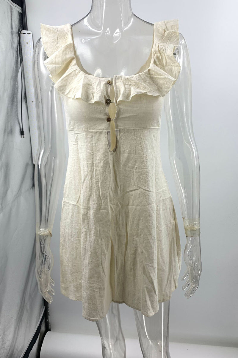 Sexy Solid Color Buttons Ruffle V Neck Irregular Dresses