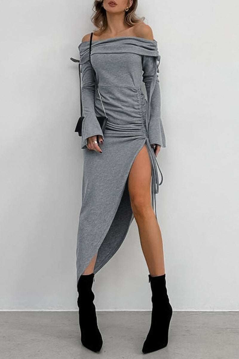 Sexy Solid Color Draw String Off Shoulder Wrapped Skirt Dresses