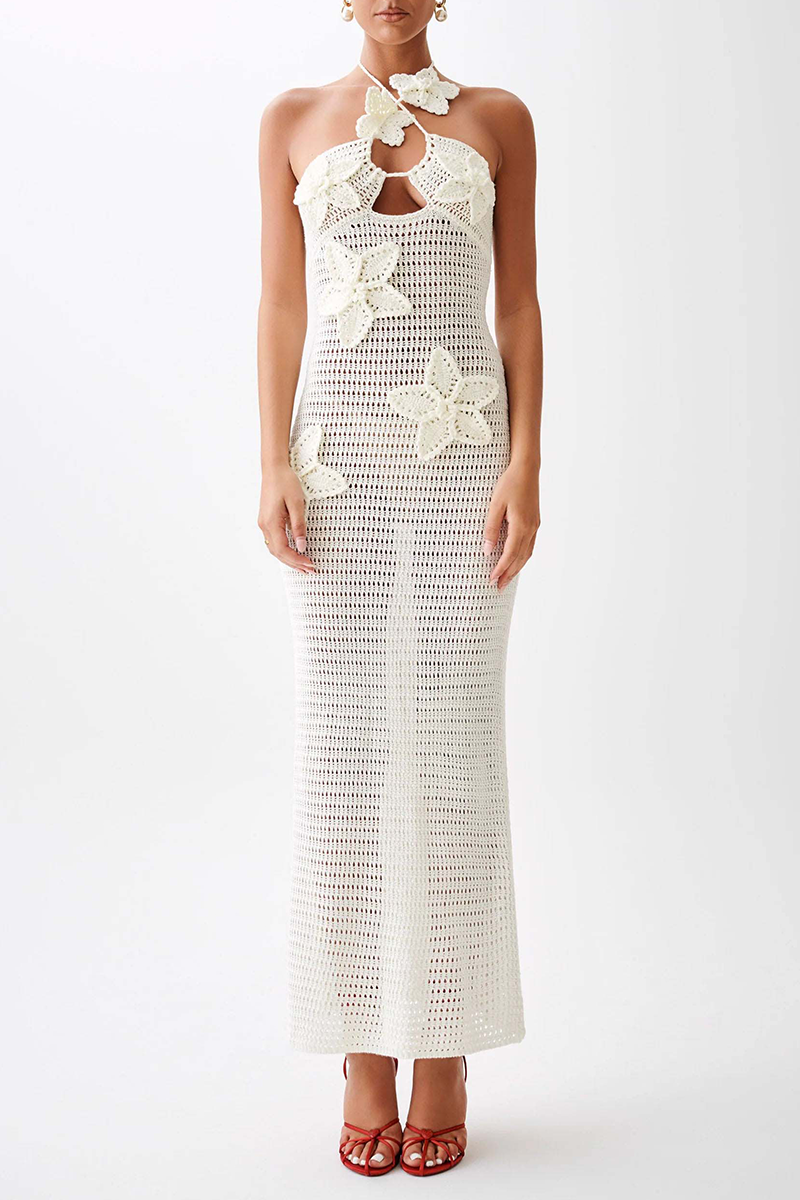 Sexy Solid Color Flowers Knit Halter One Step Skirt Dresses(3 Colors)