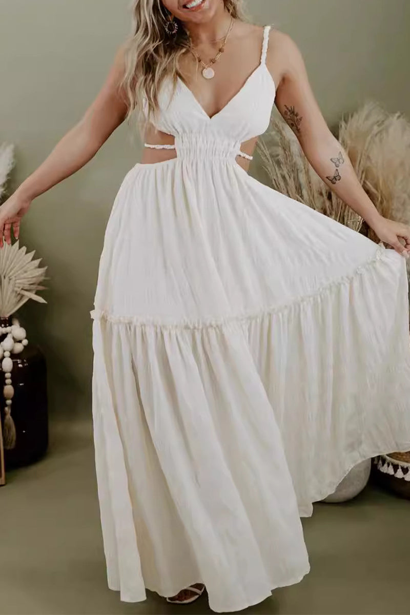 Sexy Solid Color Hollow Out Backless V Neck Sling Dresses