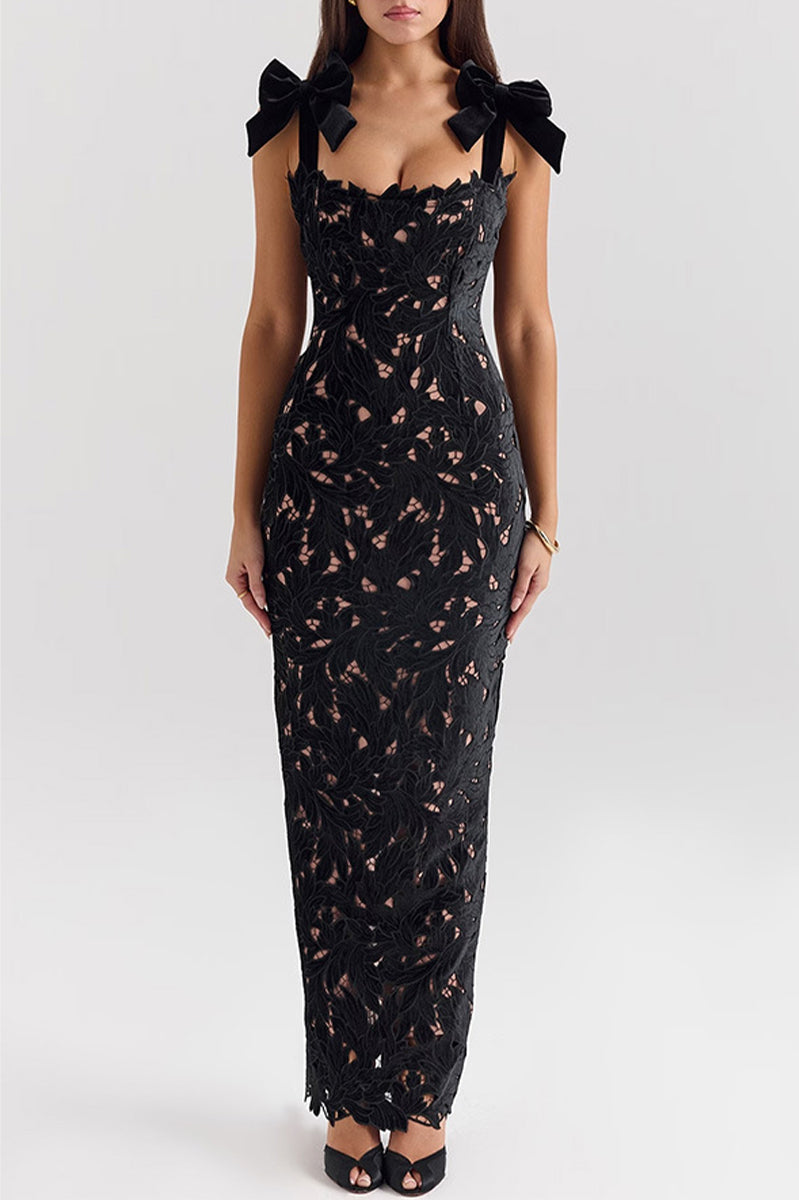 Sexy Solid Color Hollow Out Bow Decor Square Neck One Step Skirt Dresses