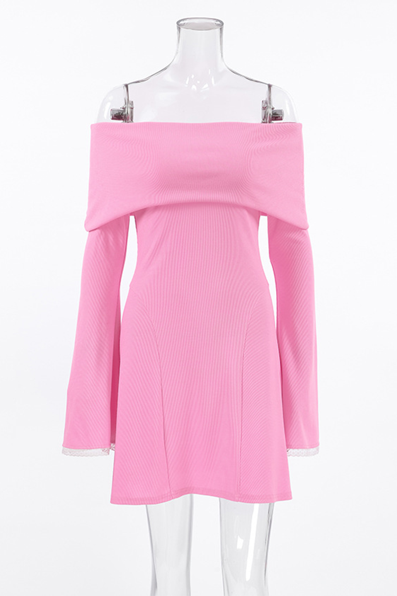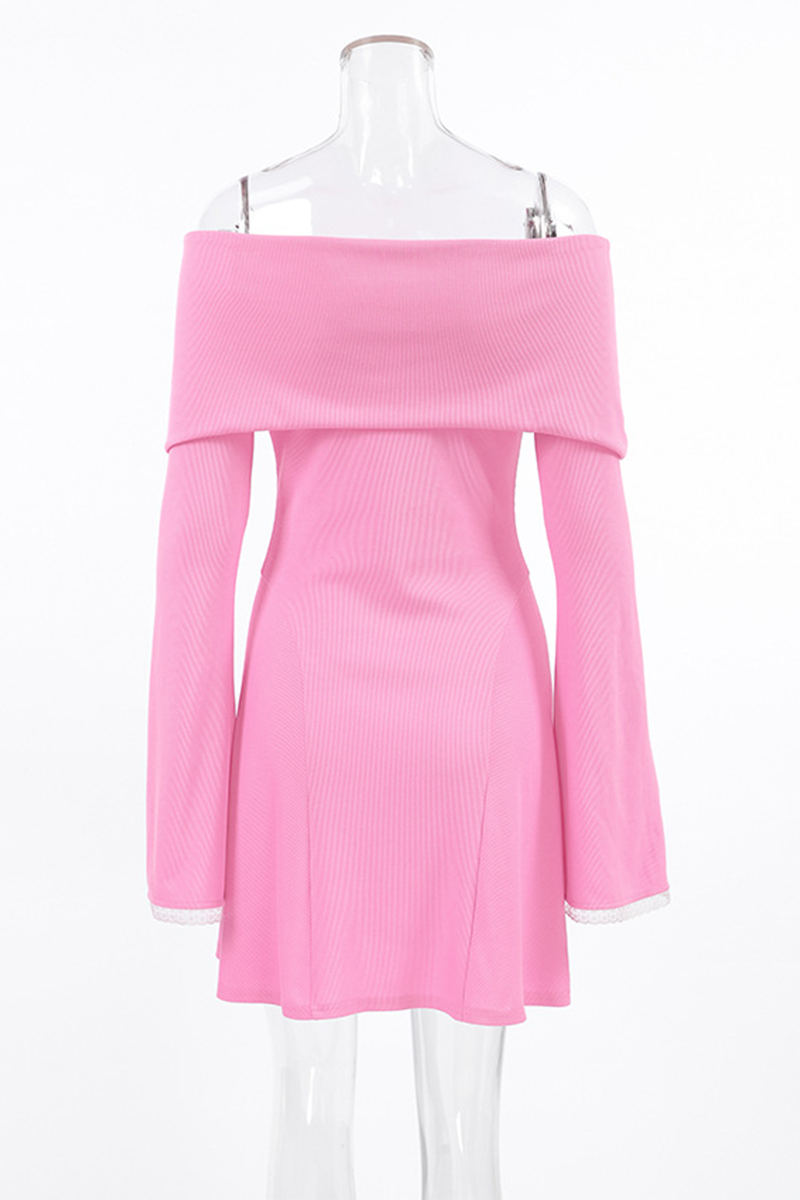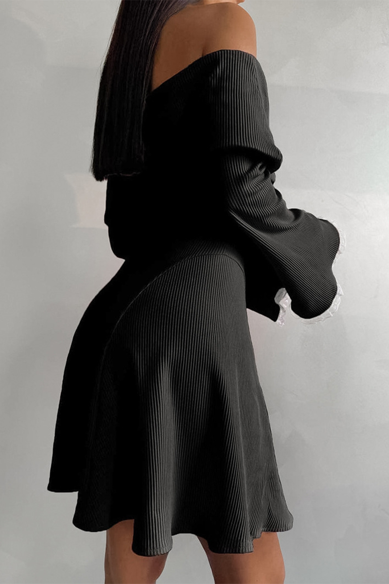 Sexy Lace Patchwork Potholes Off Shoulder Waist Skirt Dresses