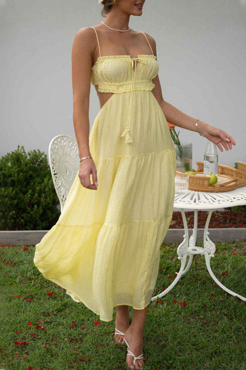 Sexy Solid Frenulum Backless Square Collar Dresses