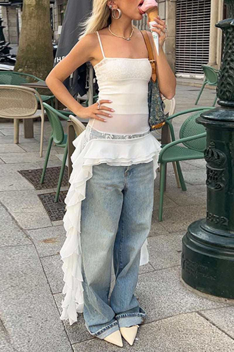 Sexy Solid Lace Strapless Irregular Dress Dresses