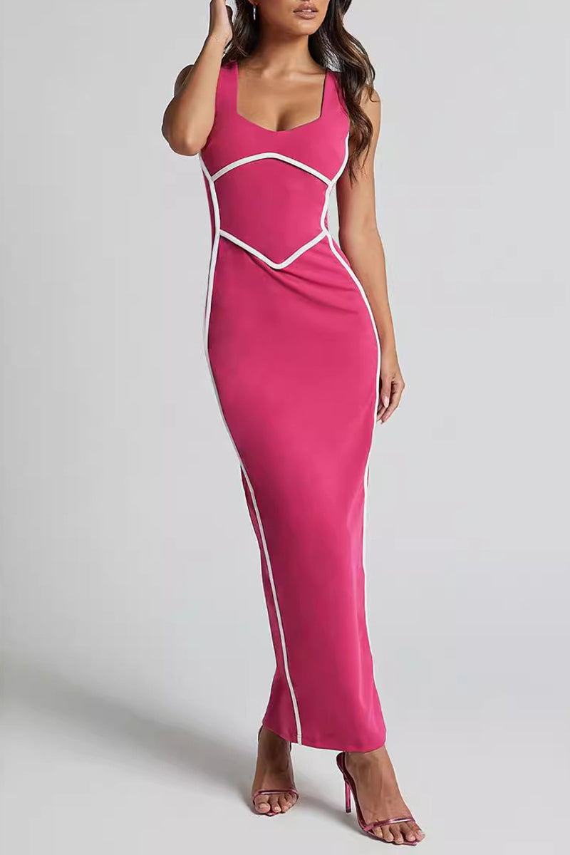Sexy Striped Contrast V Neck One Step Skirt Dresses