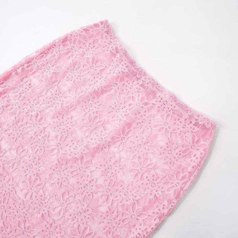 Sheer lace see through cami maxi skirt set