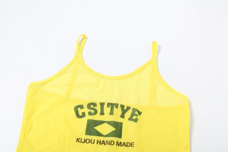 Sheer mesh letter pattern u neck cami maxi dress