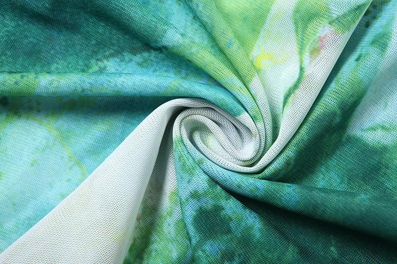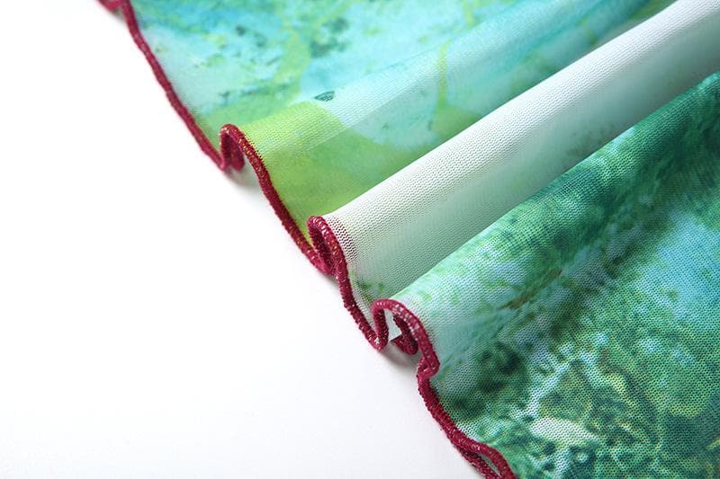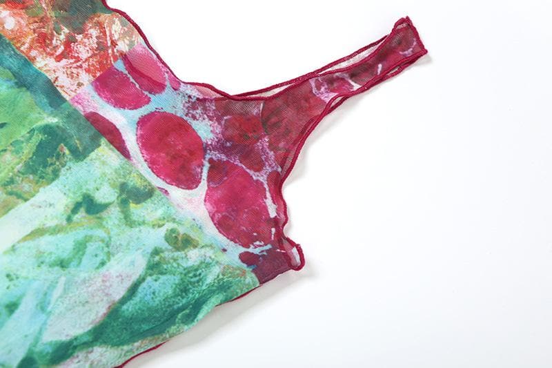 Sheer mesh ruffle square neck print tank maxi dress