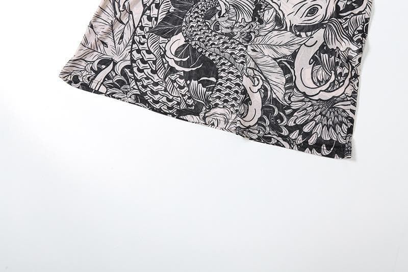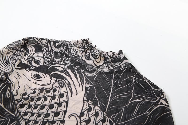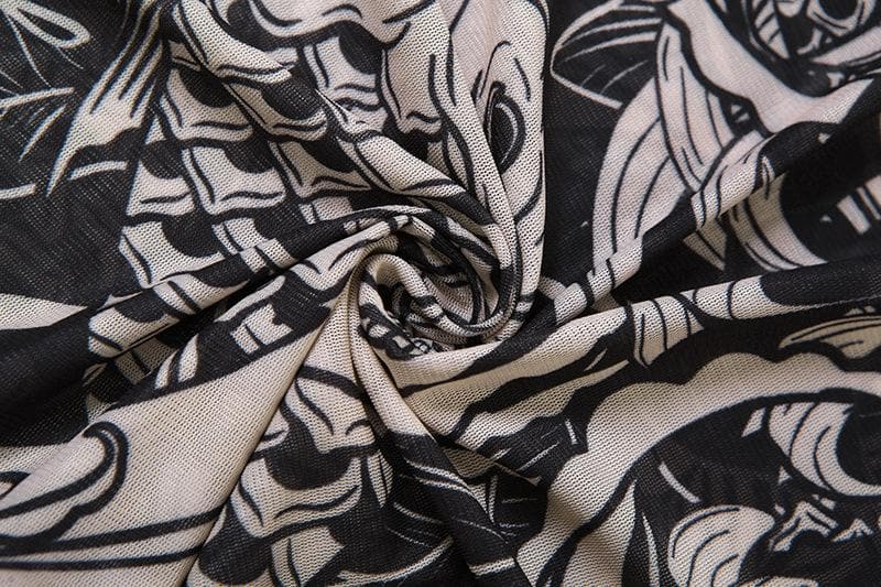 Sheer mesh see through abstract long sleeve high neck maxi dress