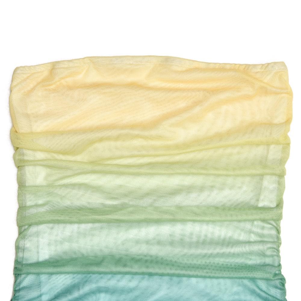 Sheer mesh see through gradient gloves ruched tube maxi dress