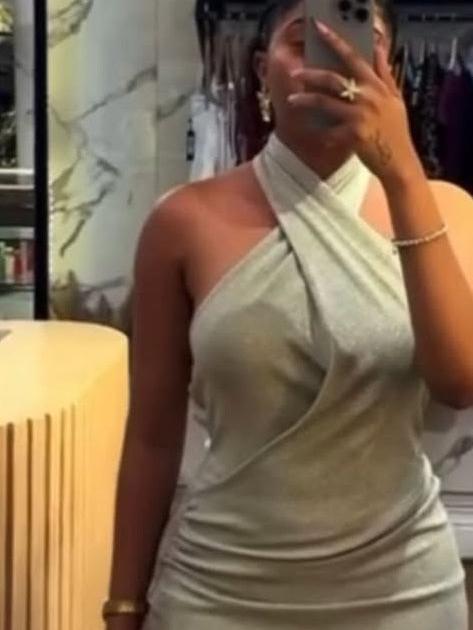 Knit dress with metallic thread. Featuring a crossover halter neck, draped detailing at the side and an open back. Matching lining. Concealed zip fastening at the back.