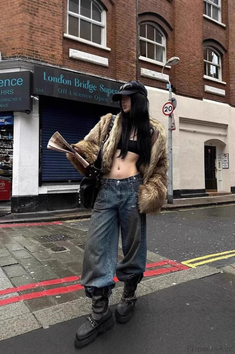 Short Faux Fur Raccoon Fur Warm Jacket Coat