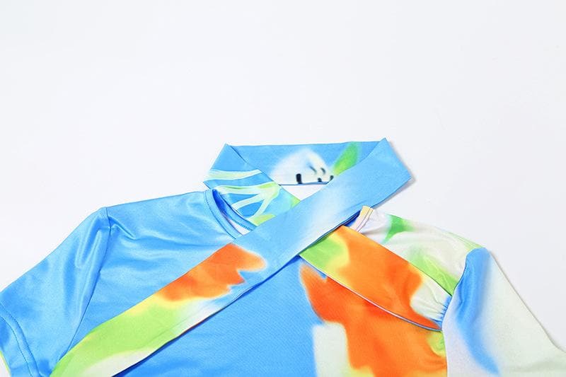 Short sleeve ruched contrast print maxi skirt set-final-sale