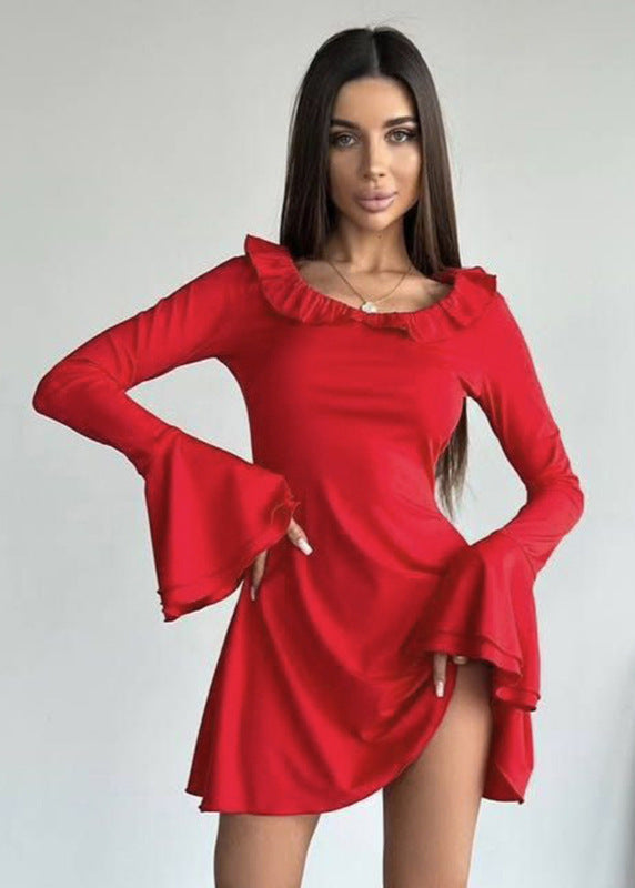Sienna is a captivating off-shoulder dress designed to highlight femininity with its graceful silhouette. Featuring long flared sleeves and delicate ruffle accents, this dress adds a touch of romance to any occasion. The lightweight fabric offers a comfortable fit, making it a perfect choice for both casual outings and elegant evenings. Pair it with heels for a refined look or keep it effortless with sandals.