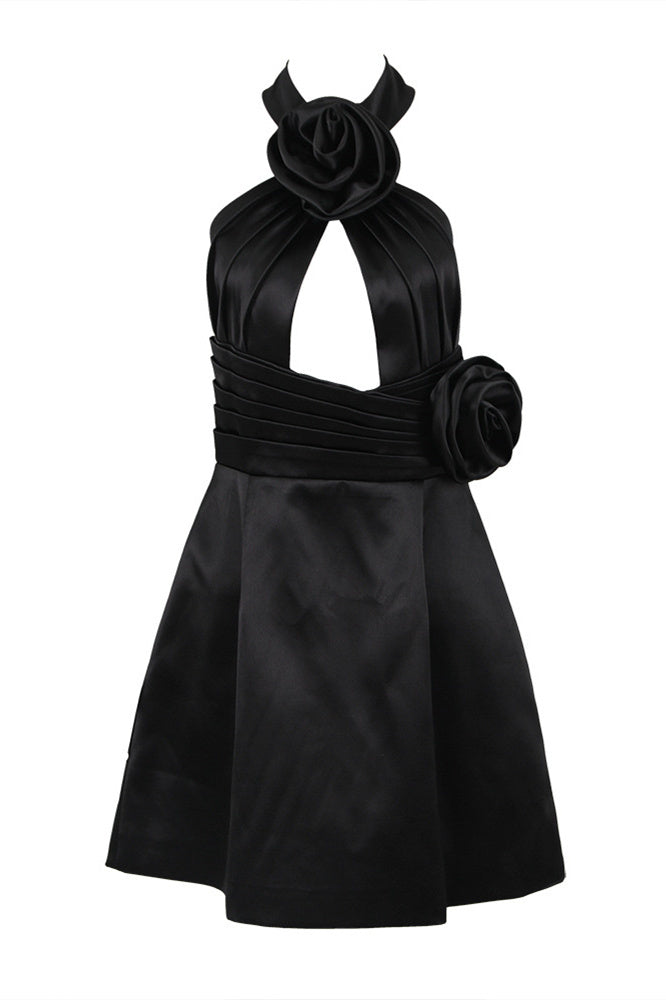 Halterneck, Sleeveless, Flower Detail, Cut-out Detail, A-line Design, Mini Length.