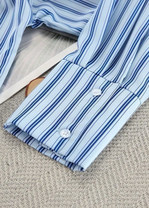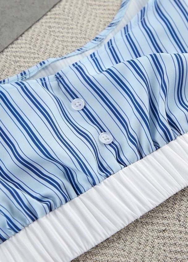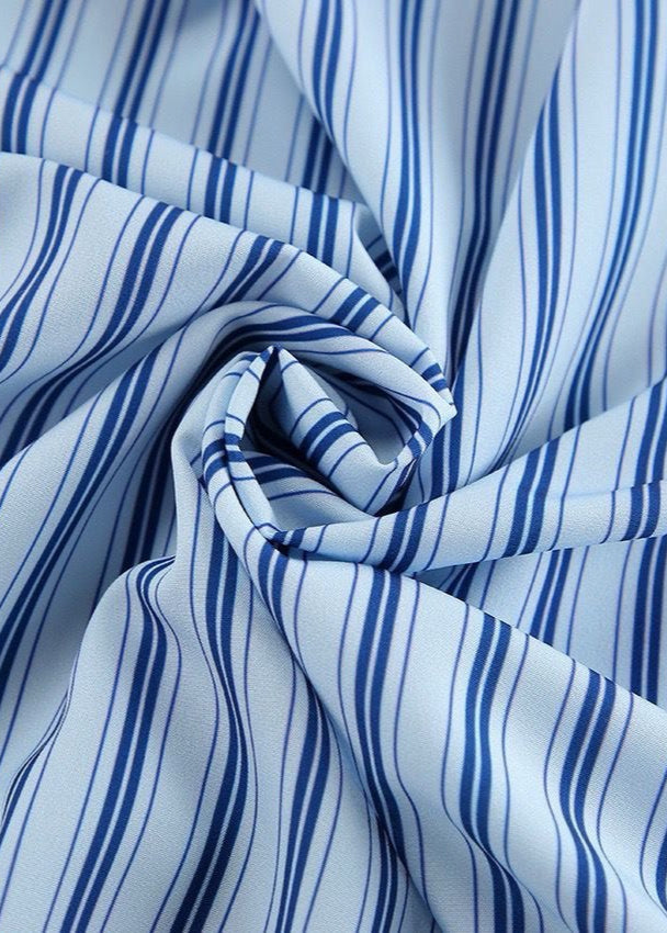 The Skyline Stripe 3-Piece Set is your off-duty upgrade—featuring a relaxed-fit striped shirt, cropped tank top, and wide-leg drawstring pants, all in a breezy cotton blend. The oversized button-up shirt drapes effortlessly with dropped shoulders and a clean collar, while the matching crop top adds contrast with a soft ruched band. The high-waisted pants complete the look with a comfy elastic waistband and full-length leg for modern flow. Wear it together for a coordinated statement or mix-and-match across your wardrobe.