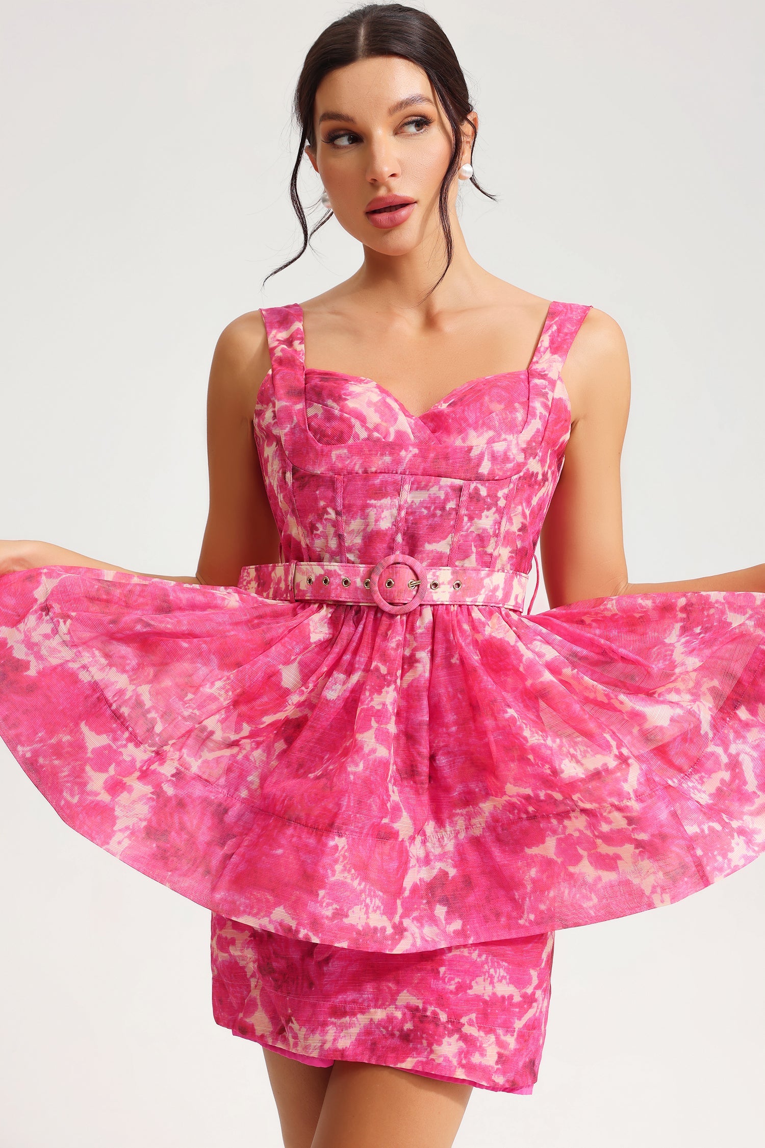 Sleeveless V-Neck Belted Mini Dress