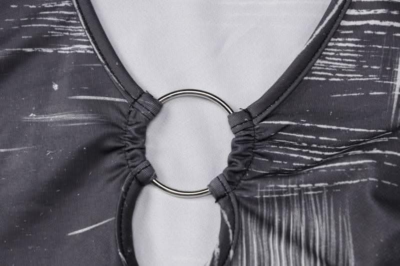 Slit long sleeve contrast o ring u neck maxi dress-final-sale