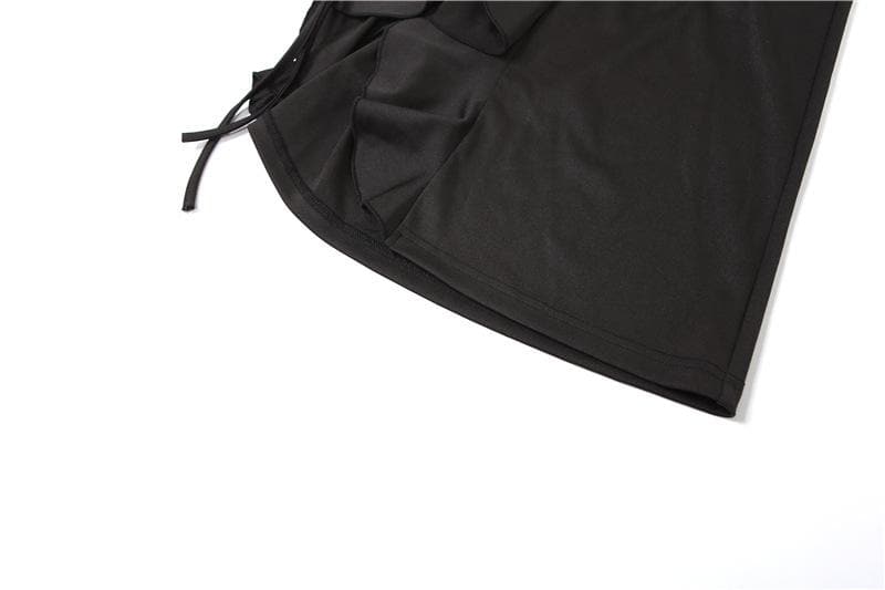 Slit ruffle medium rise solid lace up irregular midi skirt