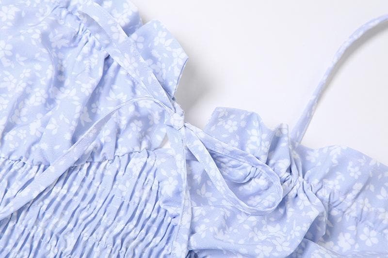 Smocked drawstring flower print backless cami maxi dress