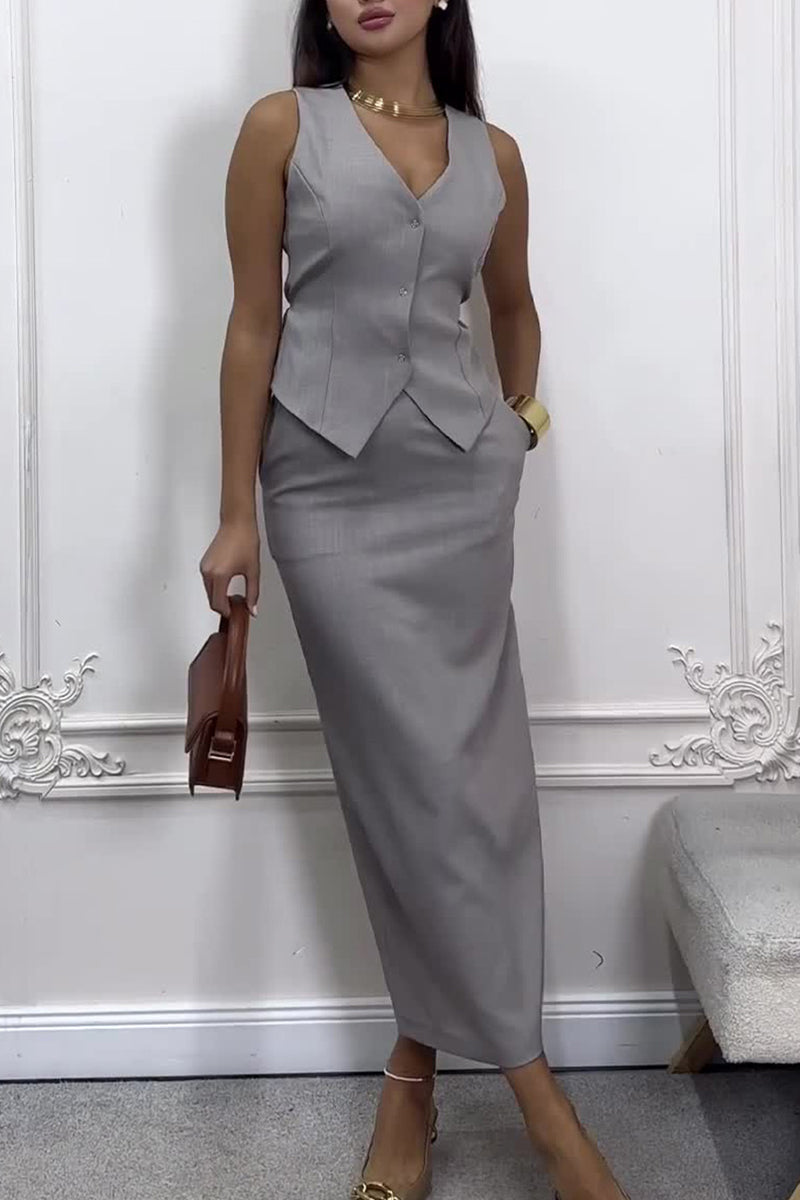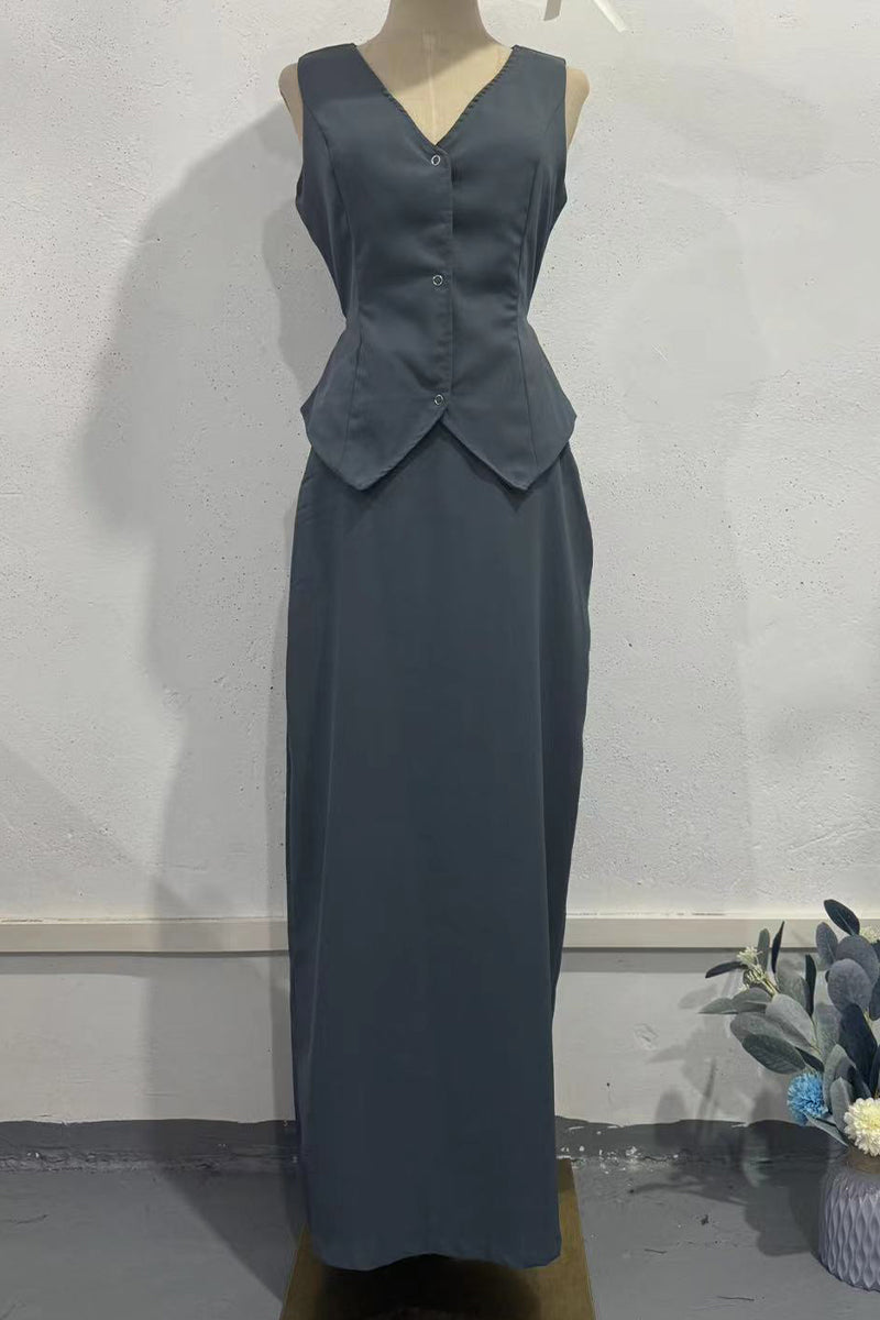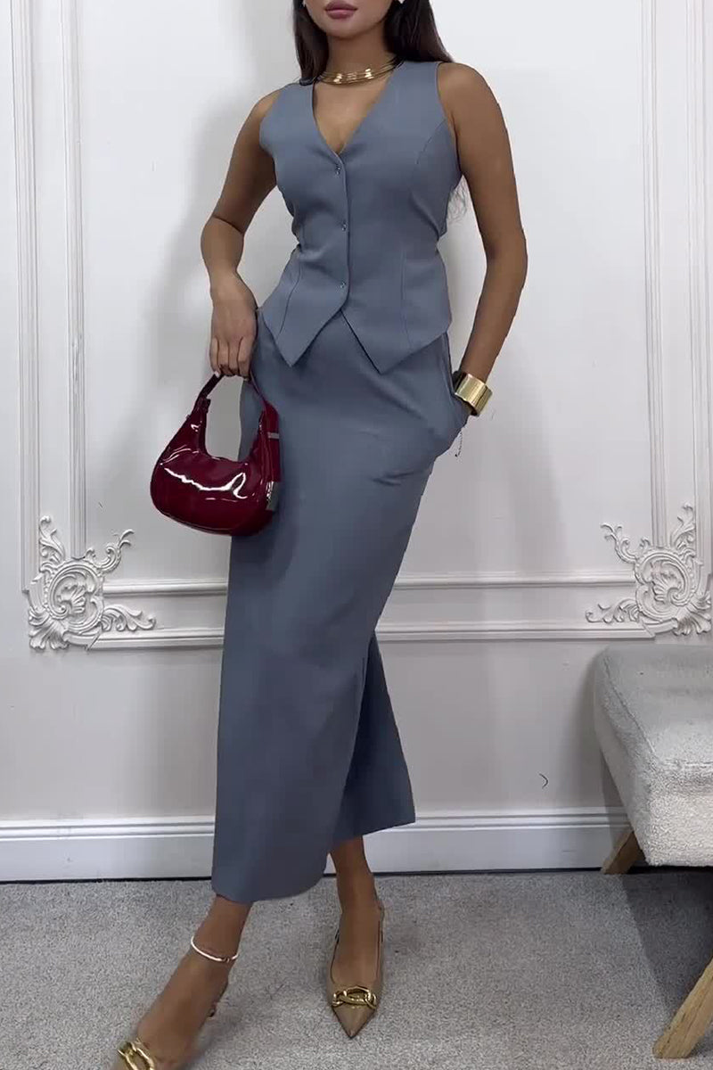 Pocket Buttons Strap Design V Neck Sleeveless Two Pieces(3 Colors)