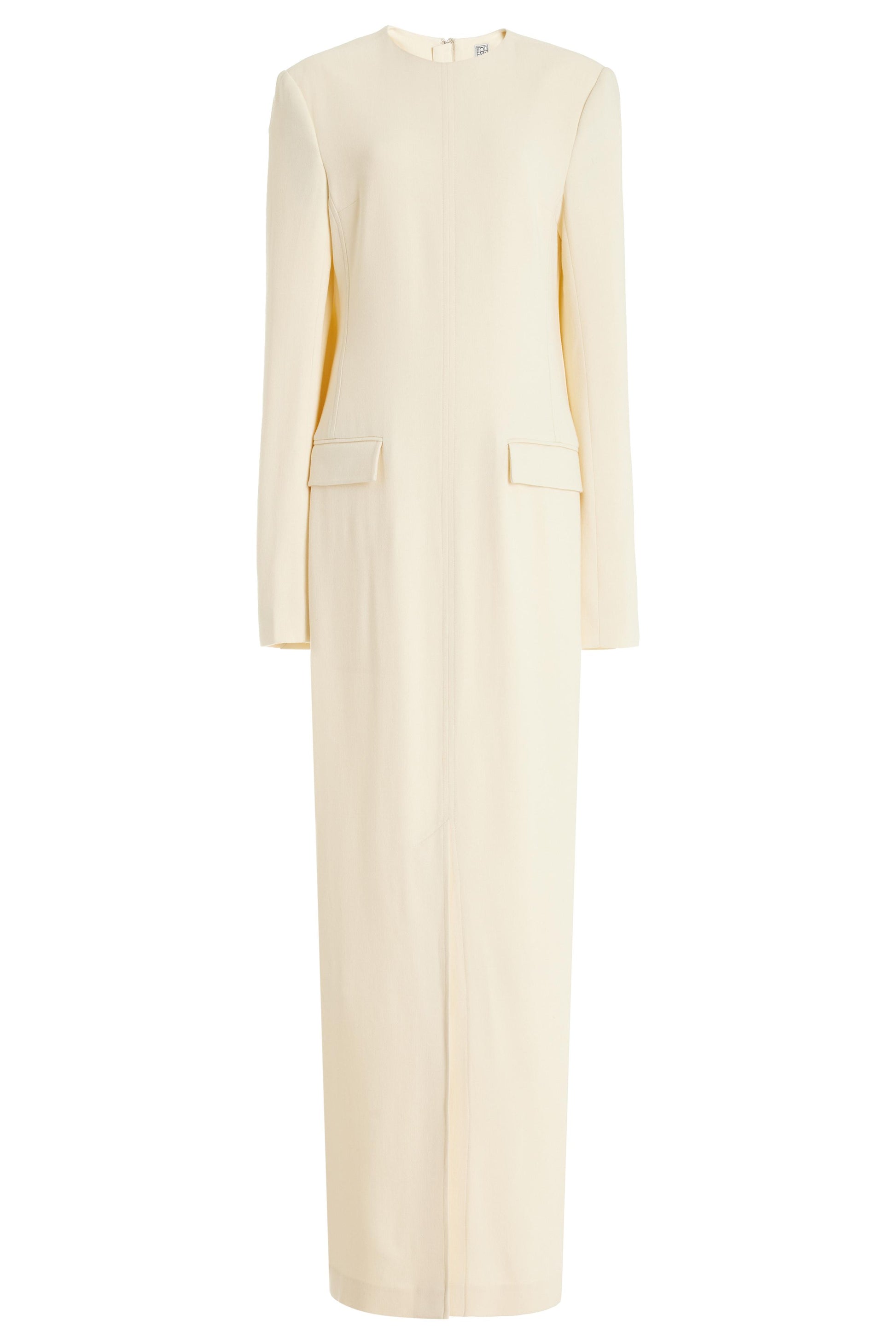 - Solid color, white, cotton, long sleeve, split, maxi dress