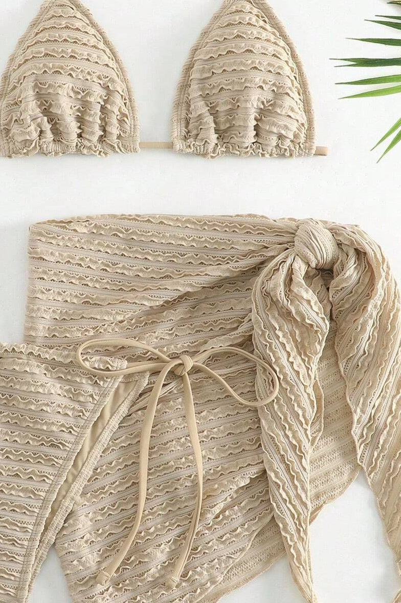 Solid Mesh Skirt Bikini Three Piece Swim Set