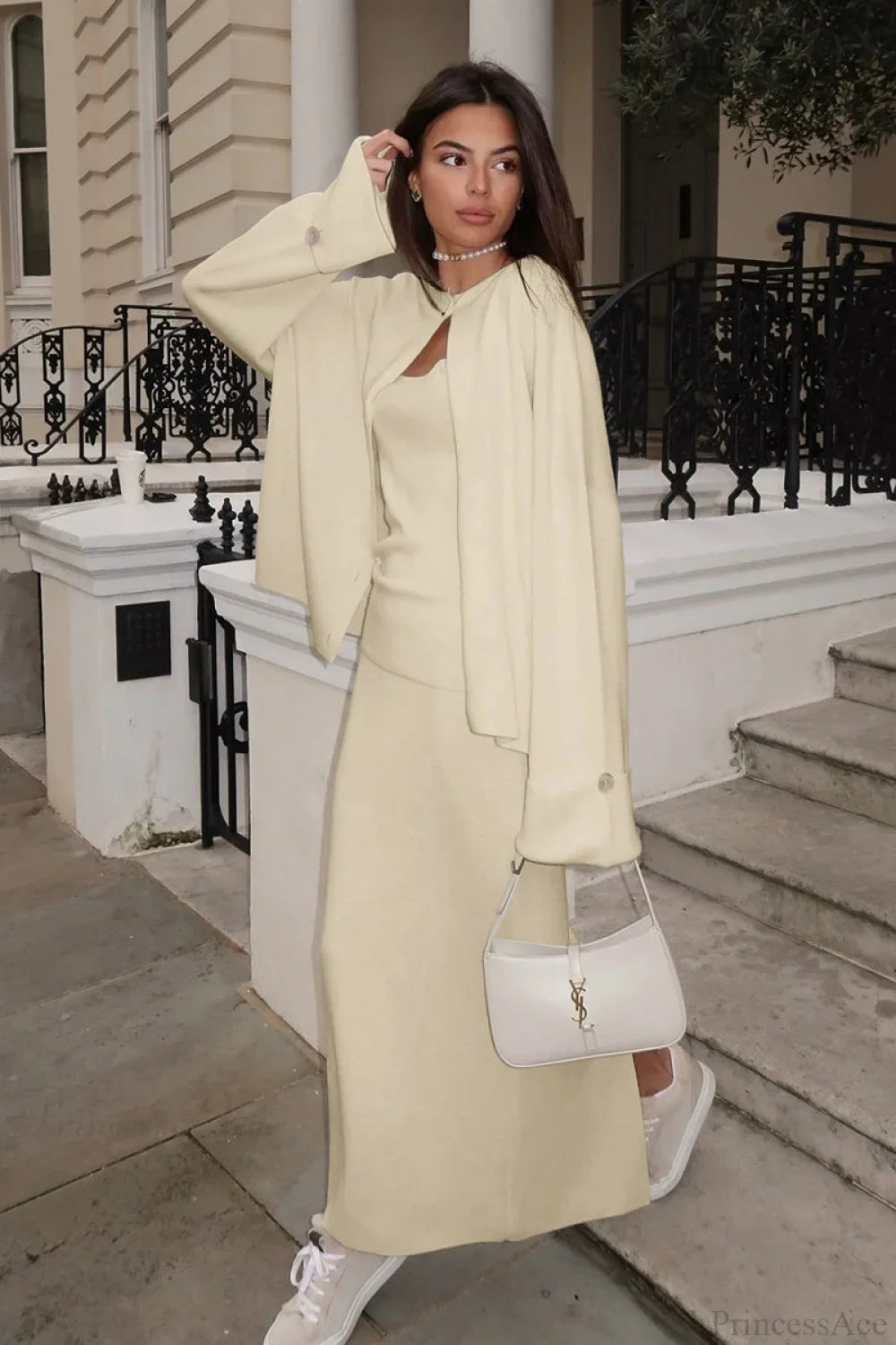 Solid Soft Minimalist Knit Cami Midi Skirt Three Piece Set