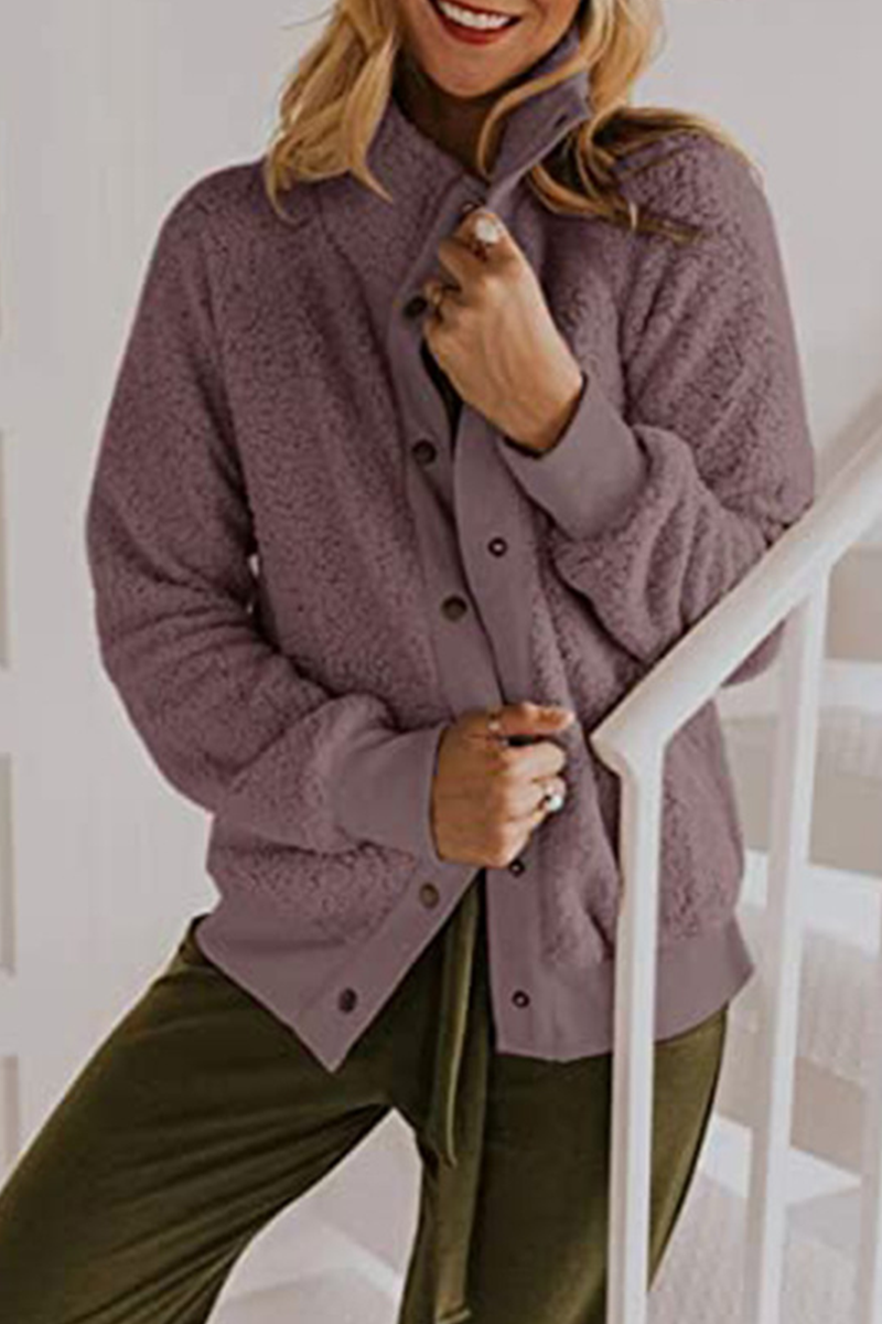 Solid Split Joint Buckle Mandarin Collar Outerwear